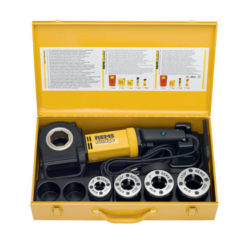 Kompakt, robust, baustellengerecht. Überall sofort einsetzbar, auch ohne Schraubstock. Schlanke Form für schwer zugängliche Stellen. Antriebsmaschine nur 3,5 kg. Nicht kopflastig, deshalb auch einhändig benutzbar. Perfekter, sicherer Sitz der Schnellwechsel-Schneidköpfe.