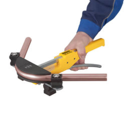 Kompakt, baustellengerecht. Handlich und leicht, Antriebsvorrichtung nur 0,9 kg. Überall einsetzbar, frei Hand, auch an engen Stellen. Einfaches, schnelles Arbeiten, z. B. Bogen Kupferrohr Ø 22 mm in nur 9 s. Markierte Biegesegmente für maßgenaues Biegen. Überbogen, Etagenbogen, Umkehrbogen möglich.