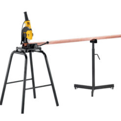 Robuster, leichtgängiger Universal-Doppelspannstock für gratarmes Sägen. Beide Rohrenden bleiben beim Sägen fest eingespannt. Einfaches, sicheres Spannen auch dünnwandiger Rohre durch vertikal geneigte Niederzugbacke.